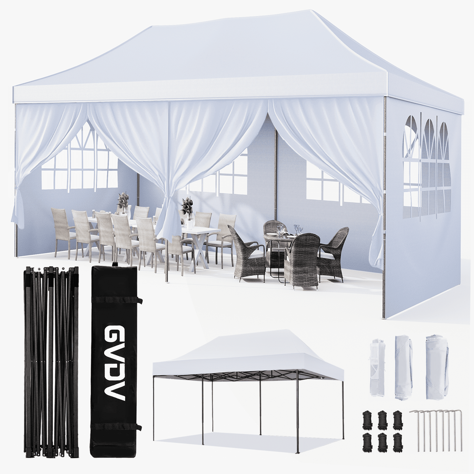 GVDV 10' x 20' Pop up Canopy Tent Party Tent Outdoor Event Instant Tent Gazebo with Removable Sidewalls and Carry Bag, White